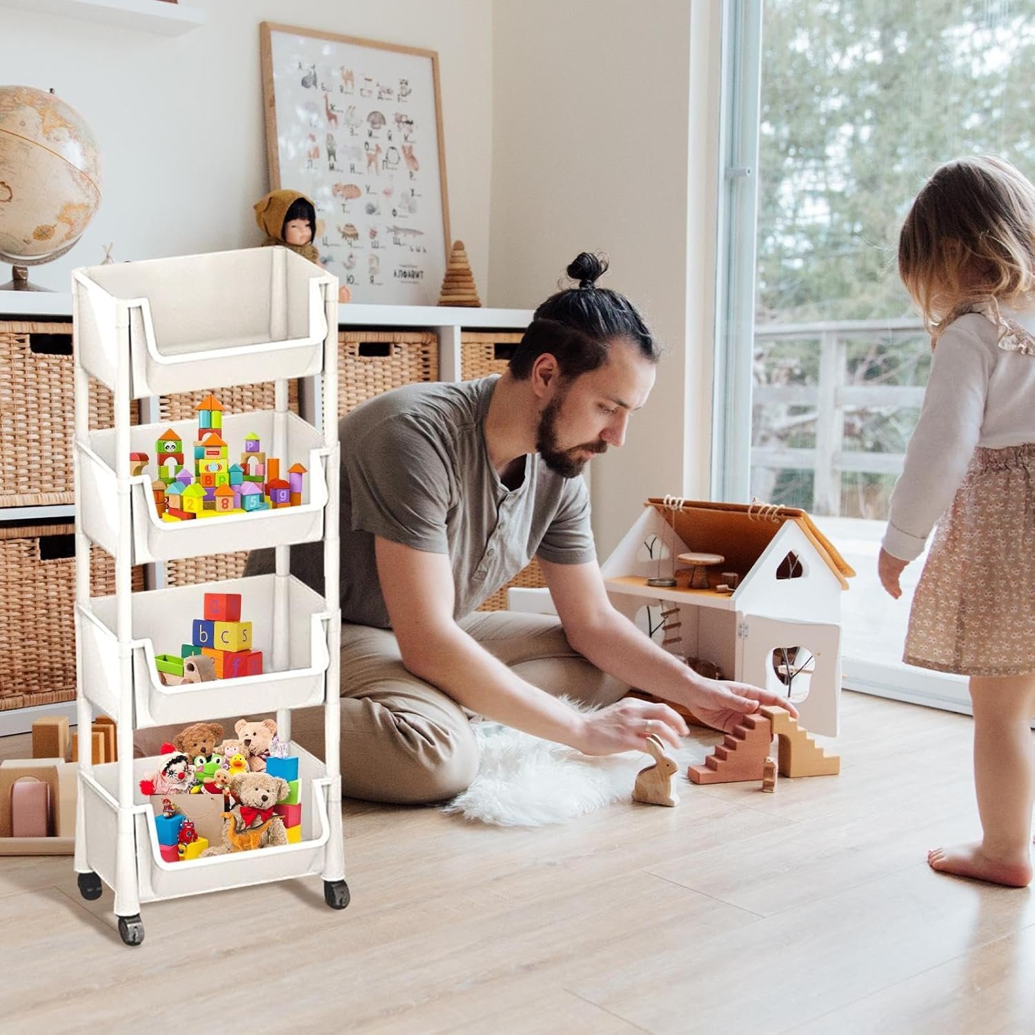 5.Moving Easily High-quality lockable wheels make it possible to move the shelf easily. You can move it effortlessly. And the unique fixation design also enables it to be firmly fixed in the place you want. This design will make your daily use more convenient.