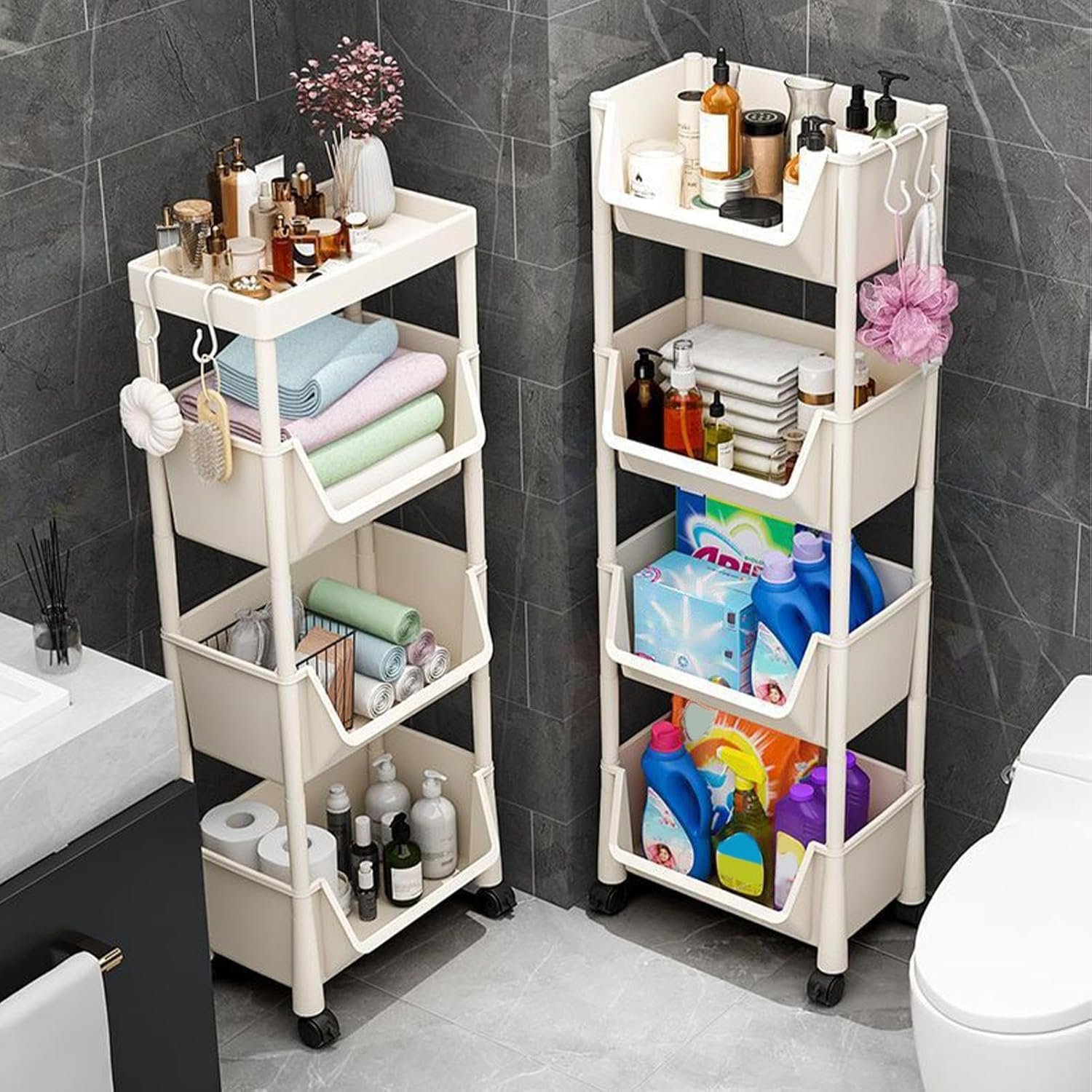 3. This storage shelf can be used in different tight spaces in your home, which is an ideal freestanding space saver for kitchen, classroom, bathroom, RVs, restroom, laundry room, office, dorm, apartment or in-between your washer and dryer.