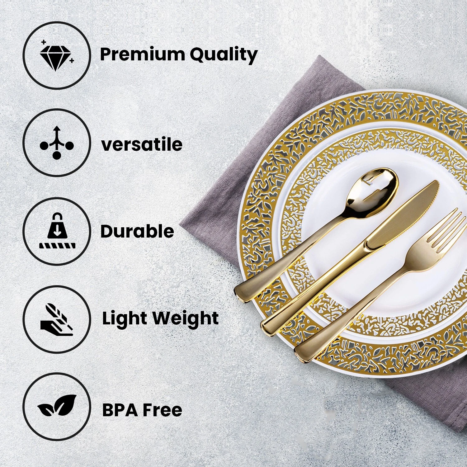 - Elegant Design: Impress guests with stylish tableware that elevates your event décor.