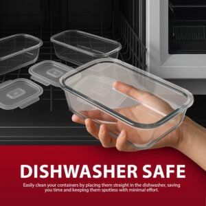 Yes,the glass containers are dishwasher safe. Lids can also be washed on the top rack for easy cleaning.