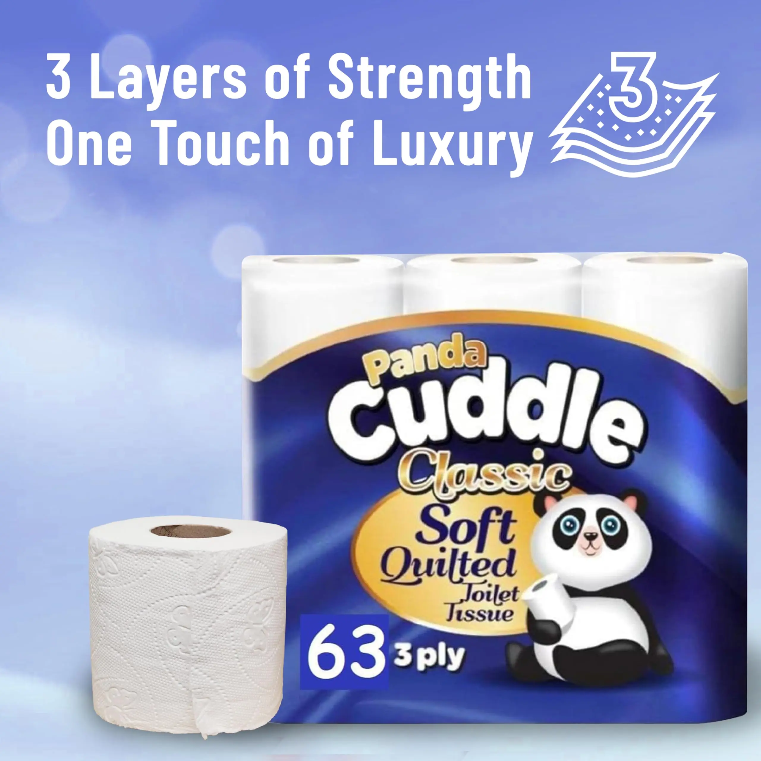 120 Rolls Panda Cuddle Classic Soft Quilted 3-Ply Toilet Tissue