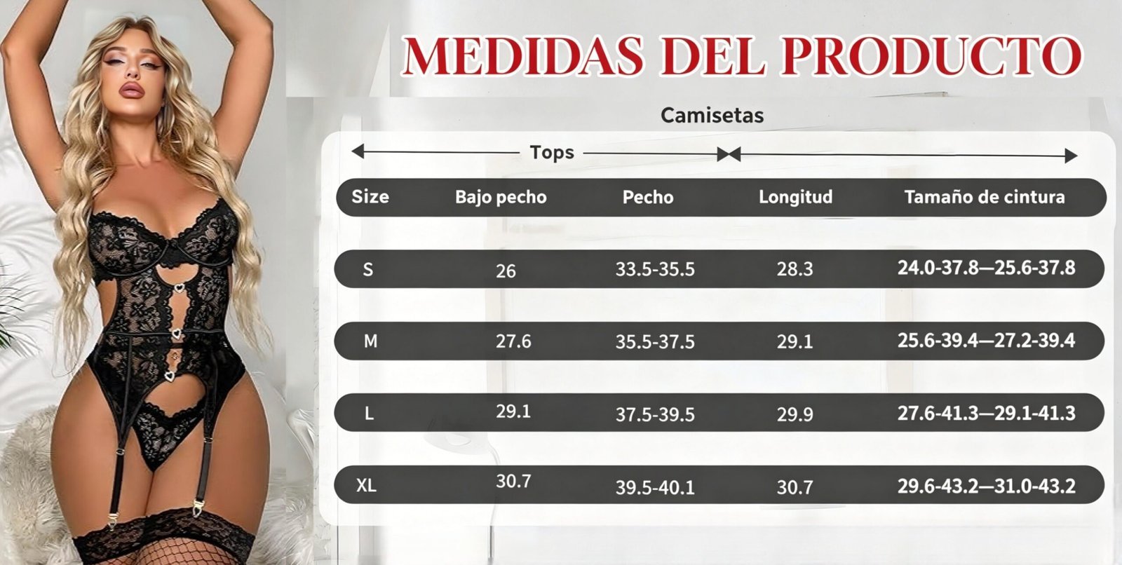 Incluye liguero integrado, un detalle que le da un toque especial y muy atractivo.