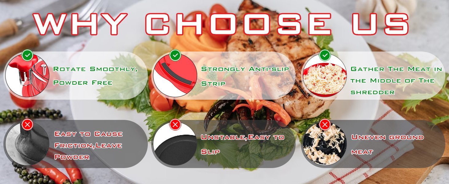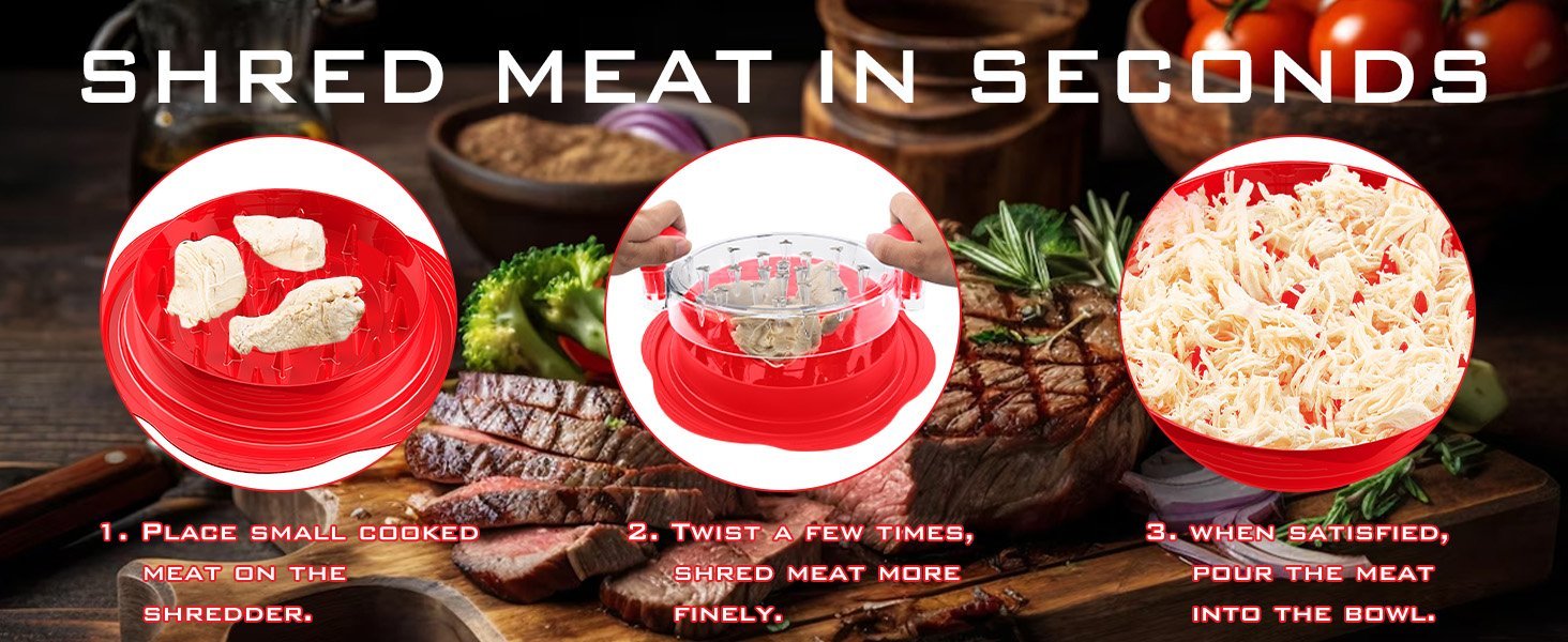 La picadora de carne es ideal no solo para diversas carnes sino también para verduras, lo que la convierte en una herramienta multifuncional en su cocina que satisface todas sus necesidades de cocina.La trituradora de pollo es adecuada para entusiastas del fitness, amantes de la barbacoa o personas a las que les gusta cocinar, lo cual es una herramienta de cocina útil para explorar más recetas trituradas y hacerte creativo en la cocina.